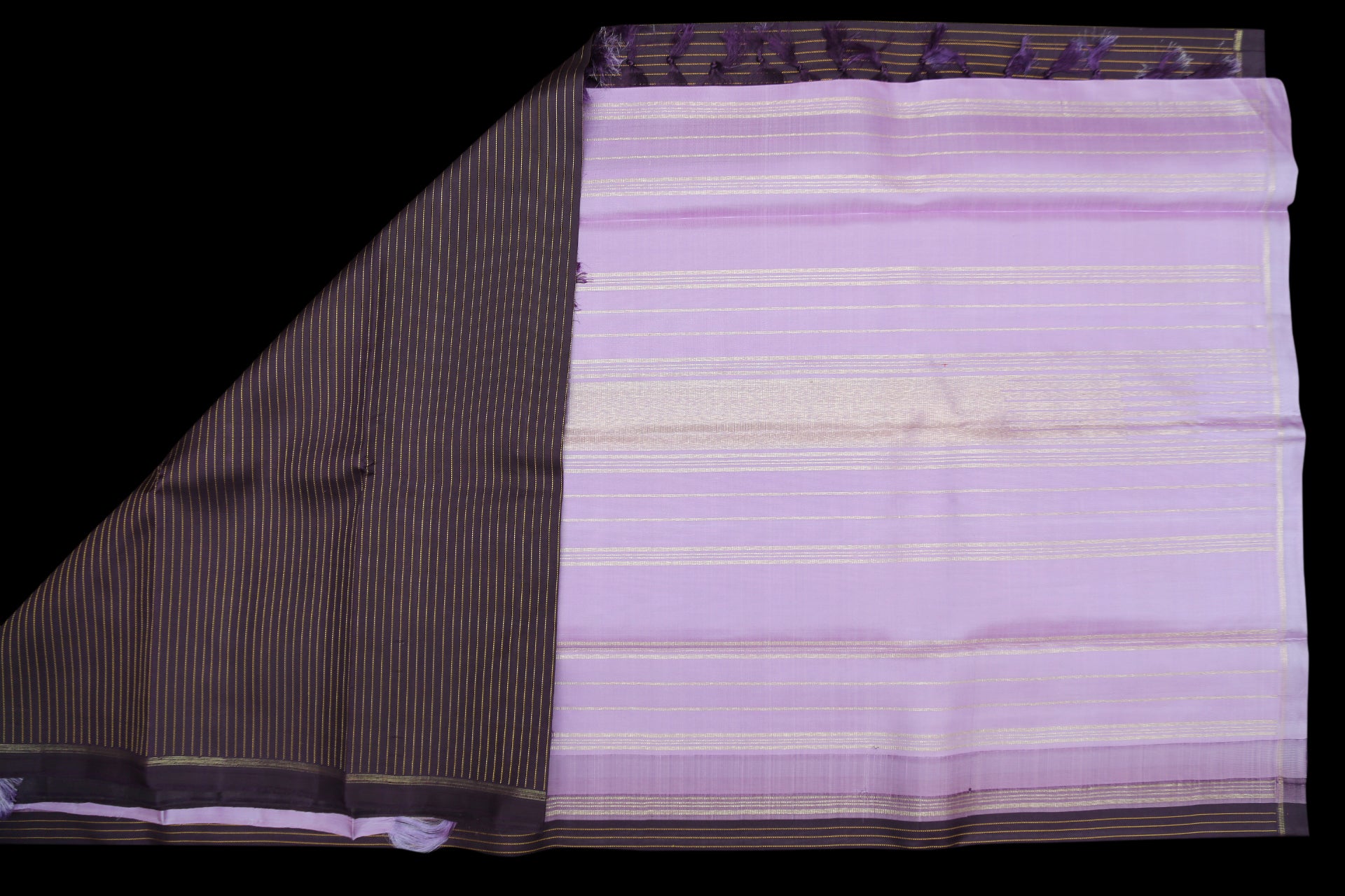 Simple yet elegant kanjivaram saree in jamun color with contrast lavender pallu and blouse.