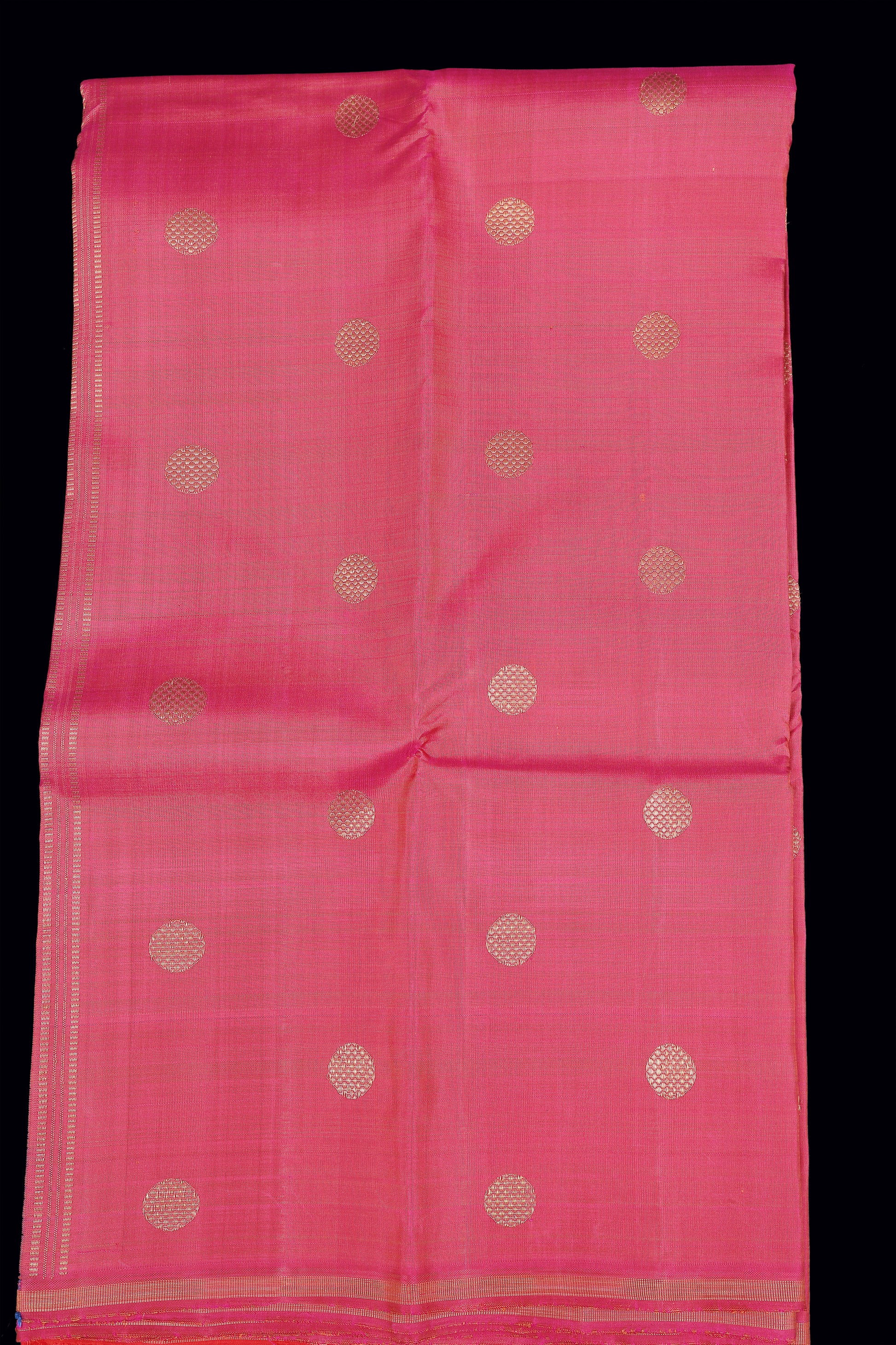 Borderless Double shade pink with coin buttas and as special double pallu grand corvai saree .
